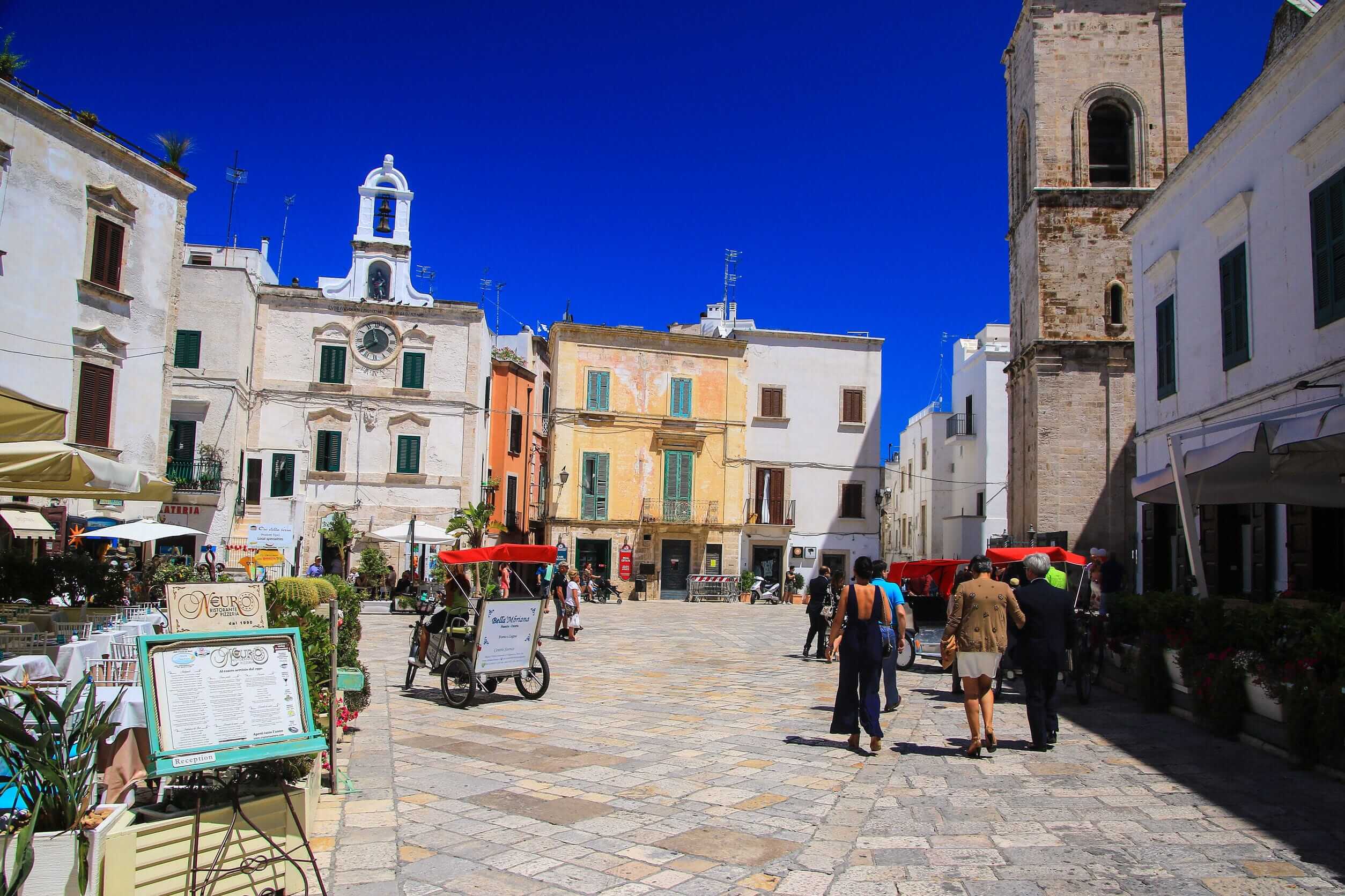 Café da manhã no hotel. Partida para Alberobello, a cidade dos Trulli, um patrimônio da Unesco com suas típicas casas de telhado cônico, usadas como residências ou para armazenar ferramentas de trabalho. Visita a Alberobello e almoço (incluso) em um restaurante local. À tarde, sairemos rumo a Polignano a Mare, uma antiga vila de pescadores onde ainda se respira a atmosfera marítima. Suas casas brancas contrastam com o azul do Mar Adriático e seus inúmeros penhascos e varandas fazem dessa costa uma paisagem a ser admirada. Prosseguiremos até Bari. Acomodação no hotel e pernoite.